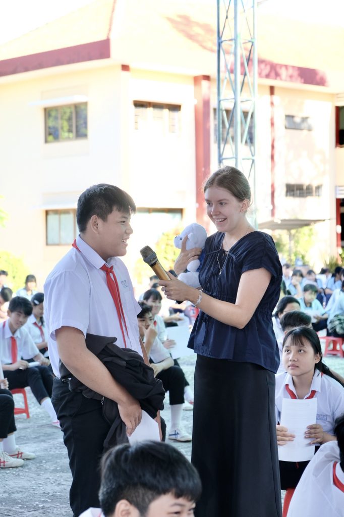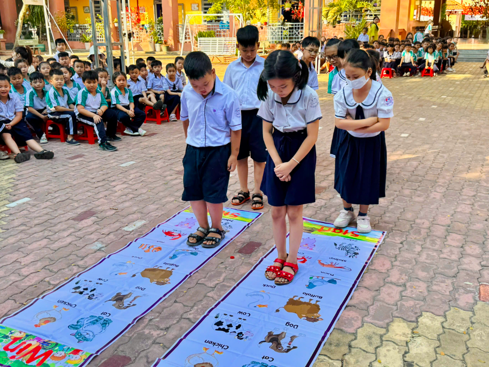Các buổi sinh hoạt được triển khai tại nhiều điểm trường như Trường Tiểu học Dầu Tiếng, Trường Tiểu học Ngô Quyền và Trường TH-THCS Định An, thu hút đông đảo học sinh tham gia. Với sự đồng hành của giáo viên nước ngoài cùng đội ngũ giáo viên chuyên môn, chương trình mang đến trải nghiệm học tập đa dạng thông qua các hoạt động giao tiếp, trò chơi tương tác và phần thi đố vui hấp dẫn.